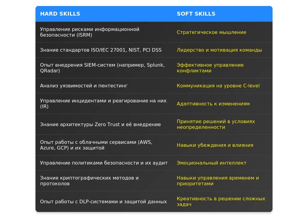 После адаптации: "ISO 27001, управление проектами, внедрение ISMS, CISSP, PCI DSS."