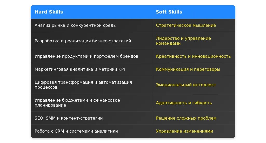 Технические навыки для директора по стратегическому развитию и маркетингу
