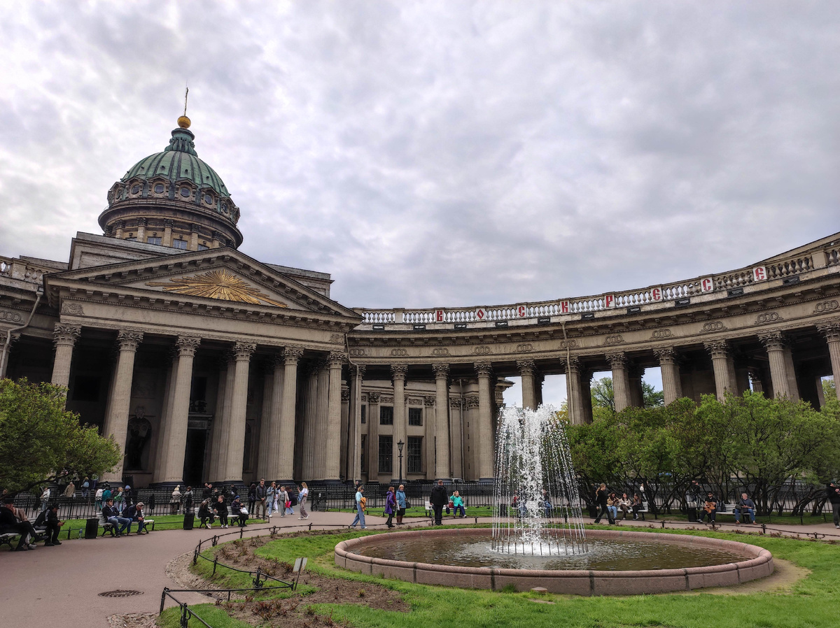 Но начали с Казанского собора. Погода позволила надеть юбку, поэтому можно было и внутрь зайти. И хотя сейчас многие не соблюдают эти нюансы, мне как-то странно.