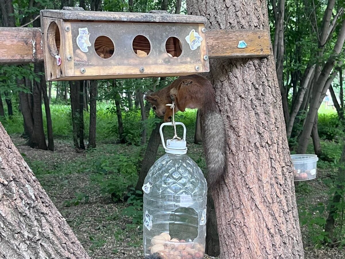 🐿 Белки утром понедельника уже суетятся в парке на Воронежских озерах, добывая пропитание