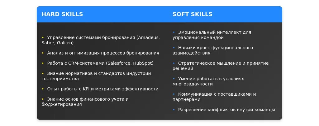 После адаптации: "Знание систем бронирования Amadeus и Sabre, навыки аналитики данных, управление командой до 15 человек."