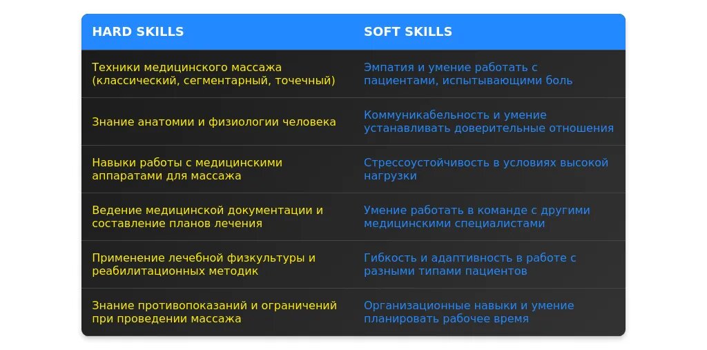 - ключевые навыки, востребованные в массаже и медицине;