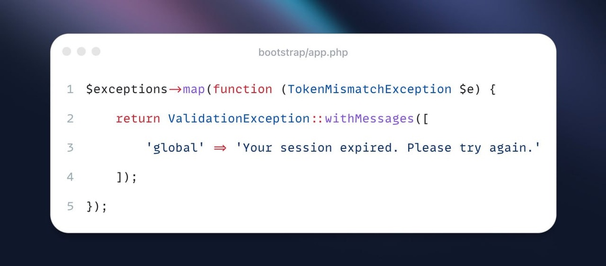 Преобразуйте исключения CSRF mismatch в исключения валидации для улучшения пользовательского опыта. Поскольку исключения валидации обычно генерируют ответ редиректа, токен CSRF должен автоматически обновляться, чтобы пользователь мог повторить попытку. 👍 📱 @dev-notes.ru #Laravel #CSRF #tips