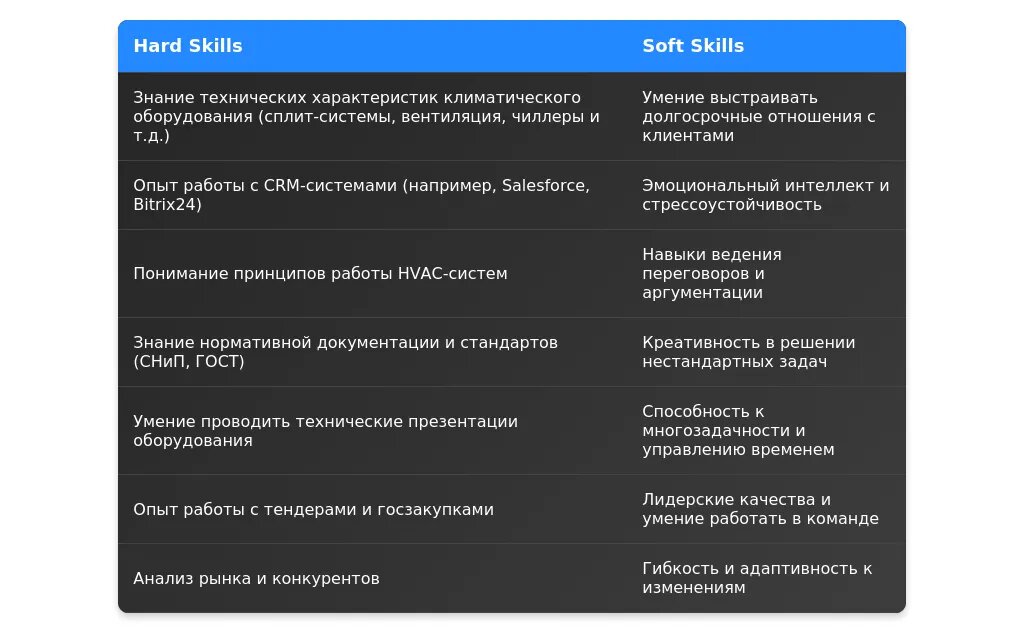- Ключевые навыки, связанные с продажами и климатическим оборудованием.