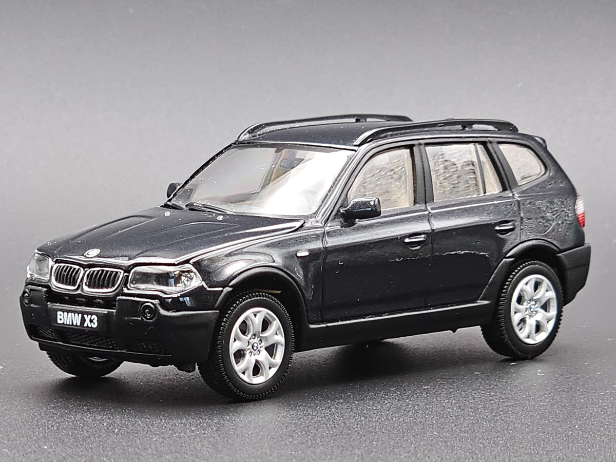 Коротко о модели BMW X3 3.0i, black, регулярная серия Kyosho, материал металл, тираж не указан, капот открывается. Каталожный номер 03521BK. Качество проработки на высоком уровне. Недостатки: ручки дверей отлиты заодно с кузовом, в донышке излишне выпирают направляющие для подиума.