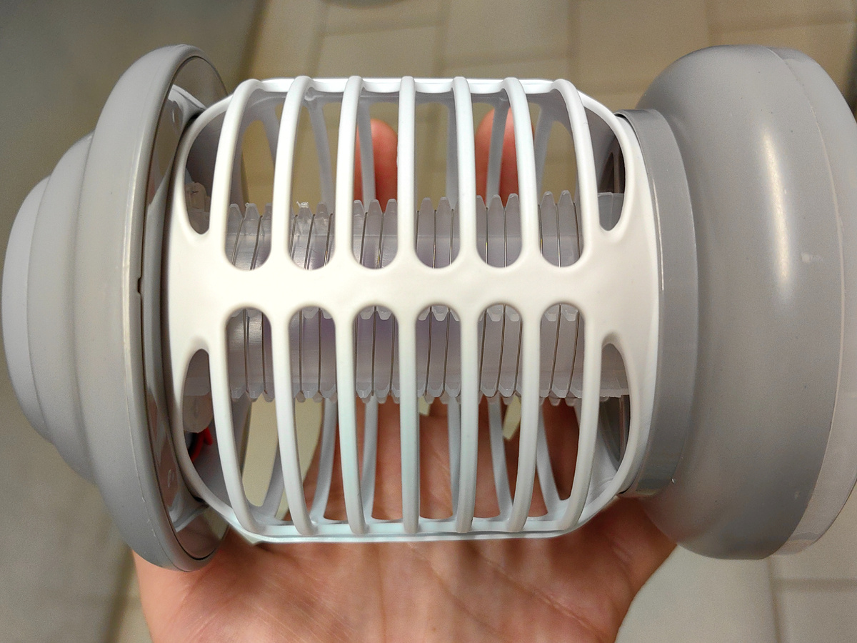 Во-первых, от комаров, можно включить антимоскитный режим, специальное фиолетовое свечение. Щеточка-метелка в комплекте.