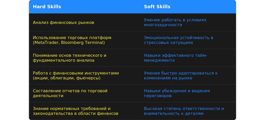 В разделе "Навыки" важно перегруппировать компетенции, чтобы выделить те, которые наиболее соответствуют вакансии. Например, для помощника брокера актуальны навыки работы с аналитическими программами и коммуникативные навыки.