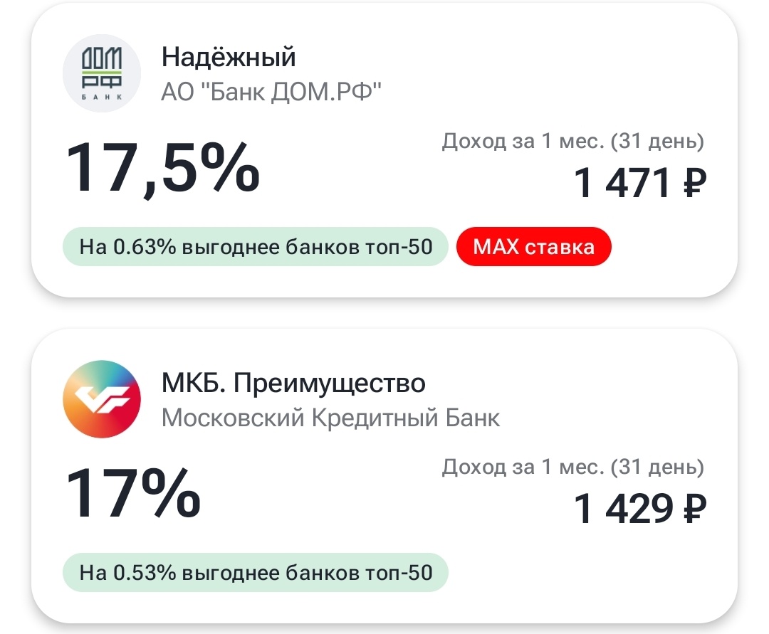 Новый месяц - новые льготные периоды, и в первый рабочий день я снова это сделала: обналичила лимит кредитных карт. Было немного страшно с учётом того, что с 1 июня усилен контроль за переводами физлиц. Но он больше касается переводов от одного человека другому - легальные финансовые платформы вроде Финуслуг, где все переводы только с и на счета, открытые на собственное имя, блокироваться не должны. Рискнем-с! С кредитки ОТП вывела 14 500 рублей - пополнением кошелька на Финуслугах с оплатой по СБП. На эту сумму здесь же открыла трёхмесячный вклад под 20%, заработаю фантастические 723 рубля. Скорее, для порядку вывела - когда пользуешься картой, есть шанс на увеличение лимита. С кредитки МТС вывела 99 тысяч из статысячного лимита - оставила немного на покупки. Способ тот же, пополнение Кошелька по СБП. На кошельке и оставила: у карты короткий грейс, вклад можно открыть только на месяц. Таких предложений на ФУ всего два Но те же самые 17% начисляются на остаток на Кошельке, только они е