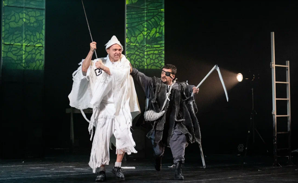 определили как путешествие в двух действиях. Дмитрий Макаров, которого режиссёр Людмила Исмайлова выбрала на главную роль, признался, что до начала репетиций у них были два очень долгих разговора о том, что это за образ — Дон Кихот.