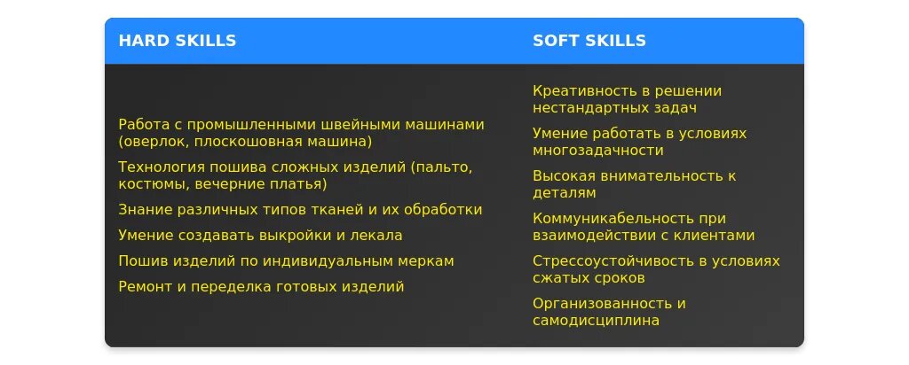 В разделе "Навыки" важно перегруппировать компетенции, выделив те, которые наиболее востребованы. Например, если вакансия требует работы с эксклюзивными тканями, стоит указать навыки работы с такими материалами. Также важно использовать ключевые слова, которые указаны в вакансии.