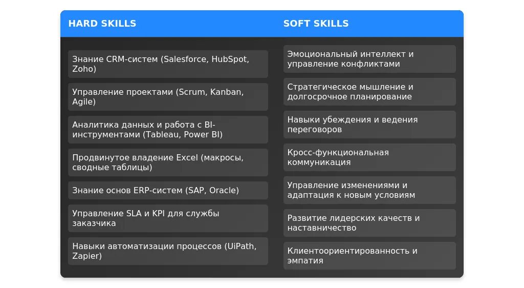 После адаптации: "Навыки работы с CRM-системами (Bitrix24, Salesforce), управление командой из 10+ человек, анализ данных для повышения эффективности клиентского сервиса."