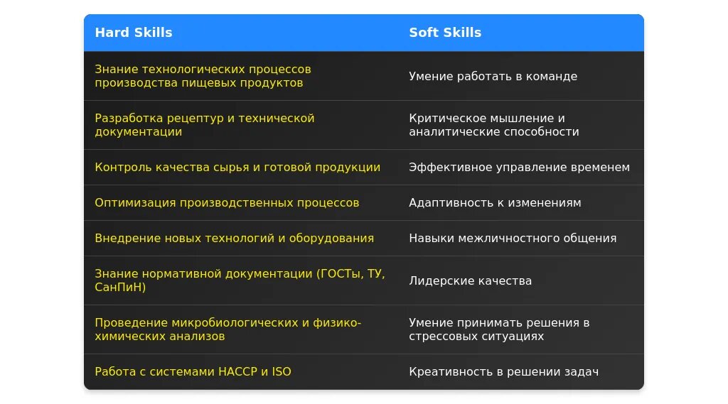 - Акцент на базовые навыки: знание ГОСТ, основы микробиологии.