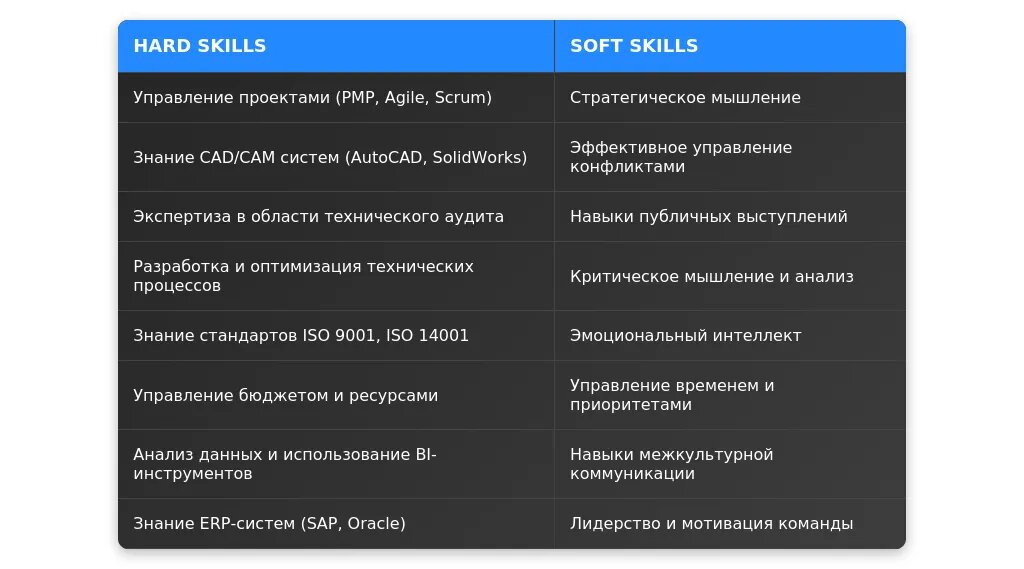 Анализ требований вакансии для начальника инженерно-технического отдела