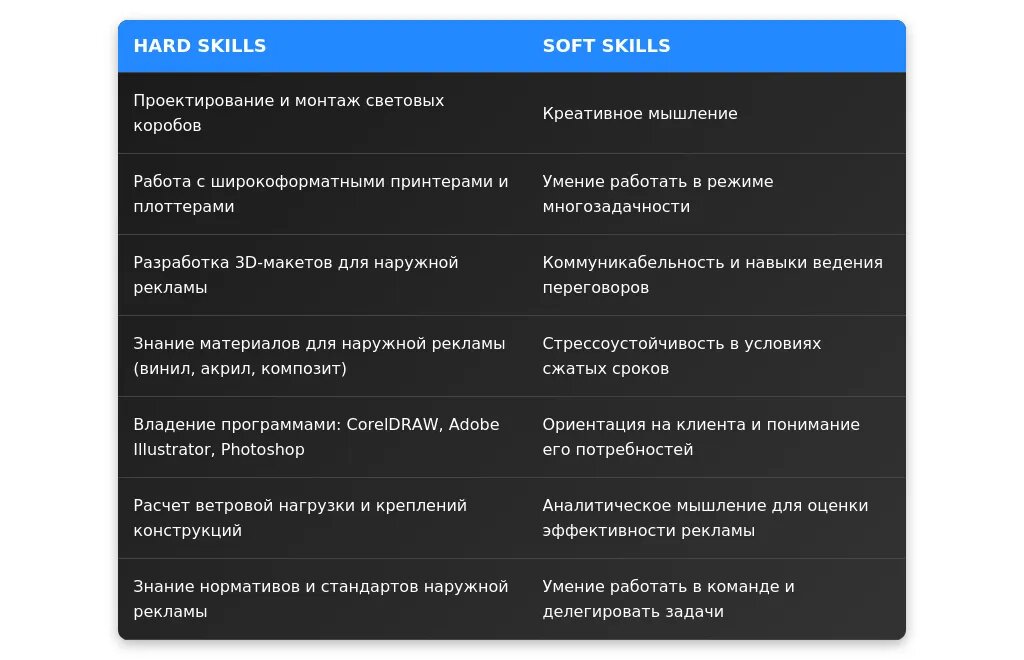 Анализ требований вакансии для специалиста по наружной рекламе