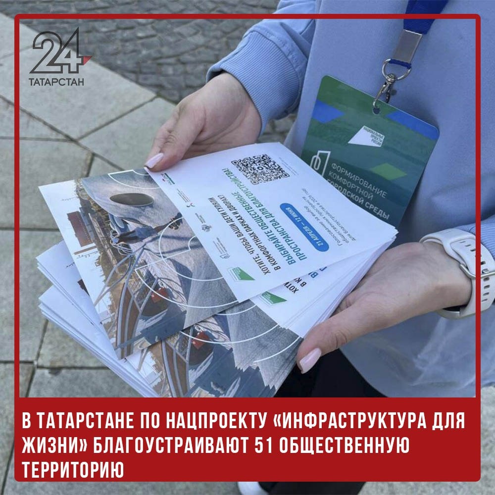 ✅🌳В Татарстане по нацпроекту «Инфраструктура для жизни» благоустраивают 51 общественную территорию В Татарстане продолжается благоустройство общественных пространств в рамках федеральной и республиканской программ. Об этом сообщил министр строительства, архитектуры и ЖКХ РТ Марат Айзатуллин на совещании, которое прошло под председательством Раиса Татарстана Рустама Минниханова в режиме видеоконференцсвязи. По словам главы Минстроя, в 2024 году в республике планируется обновить 61 общественное пространство, 51 из которых — по нацпроекту «Инфраструктура для жизни». «К настоящему времени обустроено 10 территорий, продолжаются работы на 47 объектах. Общий уровень выполнения программных мероприятий составляет 19%, динамика — почти 4%», — отметил Айзатуллин. Кроме того, в республиканскую программу включены 10 объектов в Алексеевском, Альметьевском, Бавлинском, Бугульминском, Елабужском, Заинском, Лениногорском, Мамадышском, Мензелинском и Спасском районах. Финансирование составило 185,7