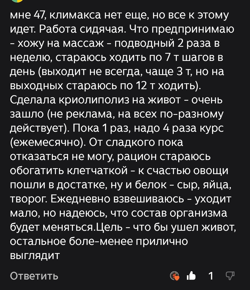 Под моей старой статьей о наборе веса после определенного возраста читательница рассказала, что она в принципе всем довольна, но хочет убрать животик.