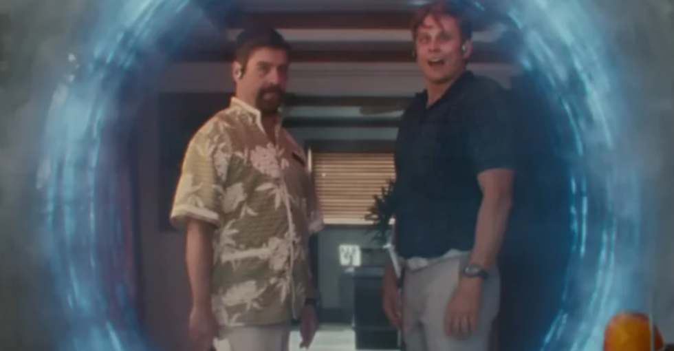 В сцене сёрфинга теперь есть отсылка к «Титанику»