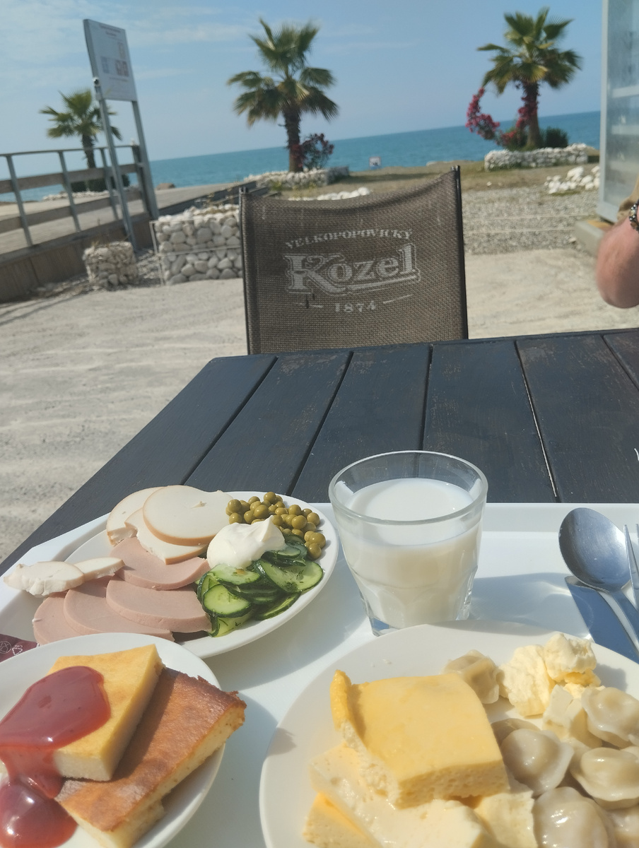 Привет, друзья! Сегодня 2 июня и я вам расскажу о том, как прошел мой вчерашний 55-летний юбилей, который я встретила в Абхазии. С утра как обычно мы позавтракали в ресторане с видом на море (шведский стол). Завтрак у нас обычно с 9-ти до 10-ти утра. На 12-30 у нас была запланирована поездка, но время позволяло искупаться в бассейне и посидеть в тени деревьев на море. В 12-30 мы выдвинулись на КПП, где нас ждал местный водитель, с которым мы заранее договорились - мы поехали на форелевуб ферму. Ехать недолго, полчаса примерно. Форелевая ферма это частное хозяйство огромные площади занимает. Прежде чем угоститься свежеприготовленной форелью гостям предлагают самим выловить ту, которая нравится. Я не помню когда держала удочку в руках последний раз, но как оказалось, ничего тут сложного нет- рыба сама кидается на крючок. Я выловила две довольно увесистые рыбки. Конечно, забавное развлечение перед вкусной трапезой получилось. ДМ снял несколько коротеньких видео как я ло