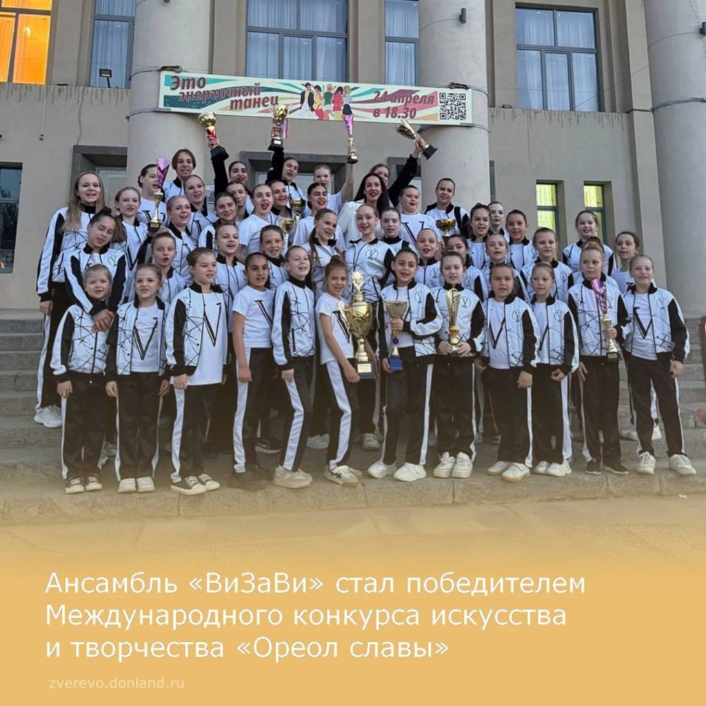 Образцовый хореографический ансамбль «Визави» города Зверево завоевал одиннадцать первых мест и гран-при XI международного конкурса искусства и творчества «Ореол славы», который прошел в Волгограде. За победу в конкурсе боролись творческие коллективы из Сочи, Краснодара, Волгограда, Ставропольского края, Саратовской и Кировской областей, Северной Осетии, Донецкой народной республики и другие. «Победа в XI международном конкурсе искусства и творчества «Ореол славы» — это заслуженное признание таланта и трудолюбия участников коллектива. Этот триумф, несомненно, станет стимулом для дальнейшего развития коллектива и новых творческих свершений», — отметила руководитель образцового хореографического ансамбля «Визави» Юлия Варьянова. А ранее в социально-культурном центре «Маяк» города Зверево прошел юбилейный отчетный концерт образцового хореографического ансамбля «Визави» под названием «Нам 15». Участники коллектива представили задорные народные, эстрадные, классические и современные хор