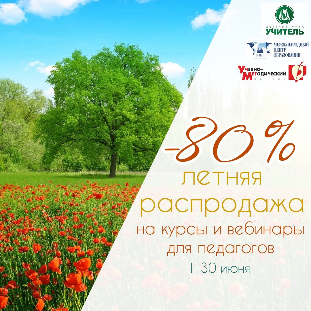Акция «Летняя распродажа» продлится с 1 по 30 июня 2025 года. В это время Издательство «Учитель» совместно с Международным центром образования и социально-гуманитарных исследований рады представить вам подборку курсов и вебинаров, которые можно приобрести со скидкой 80% https://www.uchmet.ru/campaigns/3888120/