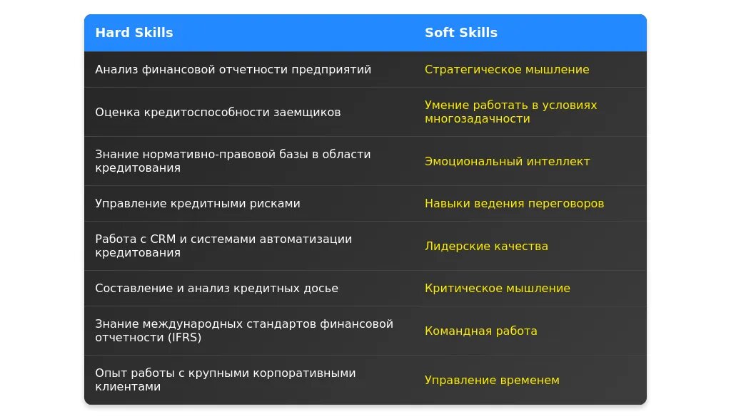 Анализ требований вакансии для главного специалиста отдела корпоративного кредитования