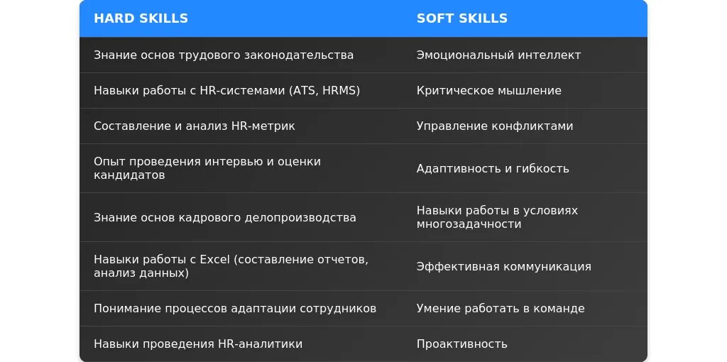 После адаптации: "Знание HR-систем (1С:Зарплата и Управление персоналом), опыт работы с документацией, навыки коммуникации и работы в команде."