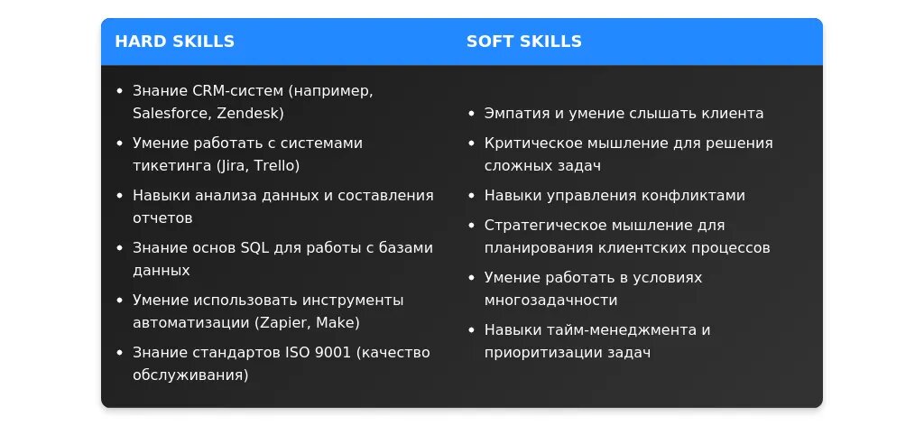 После адаптации: "Умение работать в команде, опыт кросс-функционального взаимодействия с отделами продаж и технической поддержки."