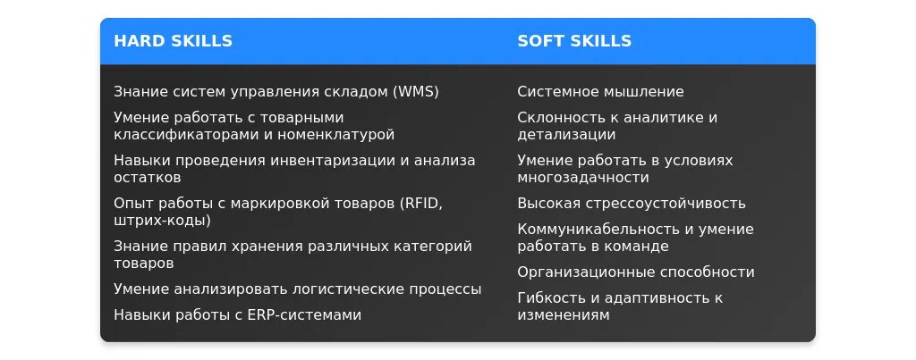 - Перечень актуальных навыков и требований для товароведа склада;