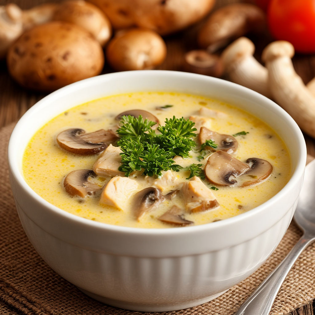 Ингредиенты: Подготовка: Куриное филе нарежьте небольшими кубиками. Шампиньоны вымойте и нарежьте пластинками. Лук и морковь очистите и измельчите (лук – кубиками, морковь – натрите на терке). Картофель очистите и нарежьте кубиками. Обжаривание: В кастрюле с толстым дном разогрейте немного растительного масла. Обжарьте курицу до золотистого цвета. Добавьте лук и морковь, обжаривайте до мягкости. Грибы: Добавьте в кастрюлю шампиньоны и обжаривайте, пока они не станут мягкими и не отдадут лишнюю влагу. Варка: Залейте все водой или куриным бульоном. Доведите до кипения, посолите и поперчите по вкусу. Добавьте картофель и варите до его готовности (около 15-20 минут). Сыр: Добавьте плавленый сыр в суп. Тщательно перемешайте, пока сыр полностью не растворится. Если сыр плохо растворяется, можно добавить немного горячего бульона и размешать. Подача: Подавайте суп горячим, посыпав свежей зеленью (по желанию). Для более насыщенного вкуса можно использовать грибной бульон вместо воды. Если у вас