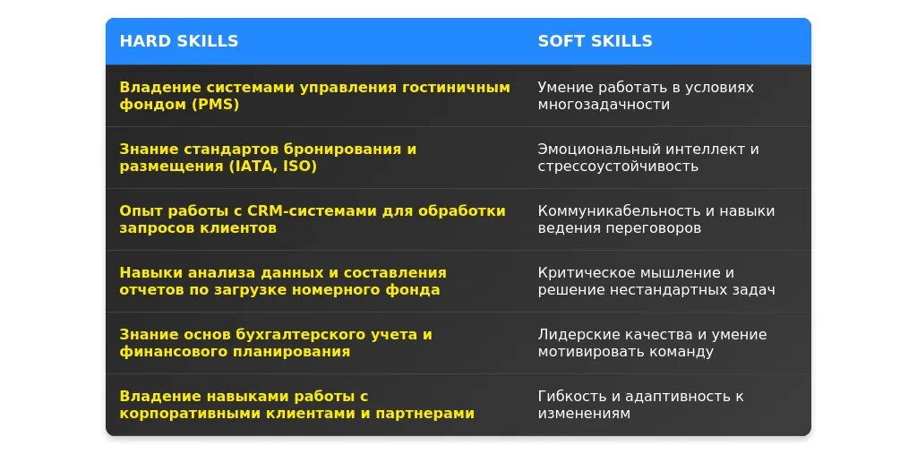 После адаптации: "Знание системы бронирования Opera, работа с VIP-гостями, навыки межкультурной коммуникации."