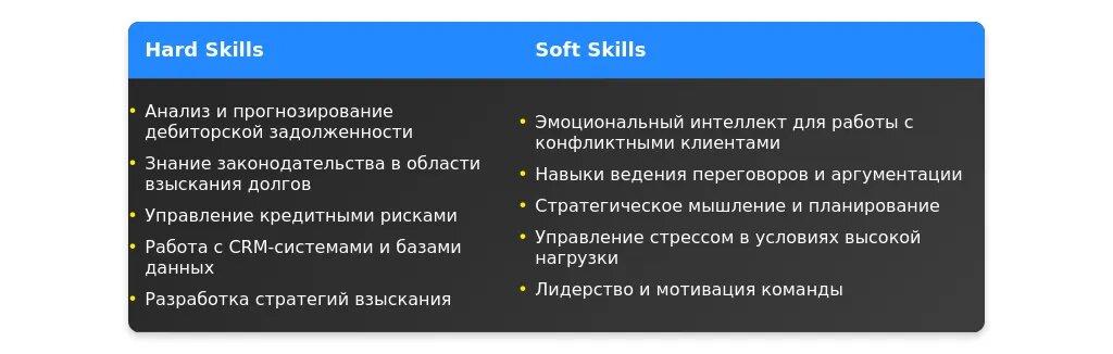 - Учитывать требования работодателей и включать актуальные навыки для позиции руководителя отдела взыскания
