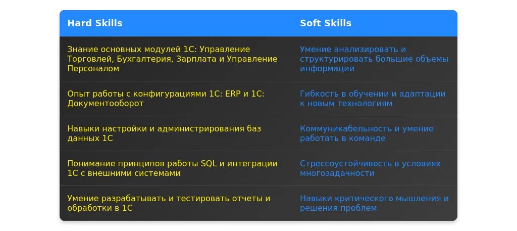 - Актуальные навыки для стажера консультанта 1С
