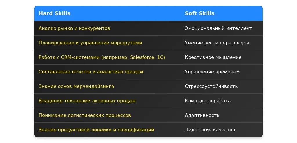 После адаптации: "Навыки ведения переговоров, знание CRM-систем, анализ рынка."
