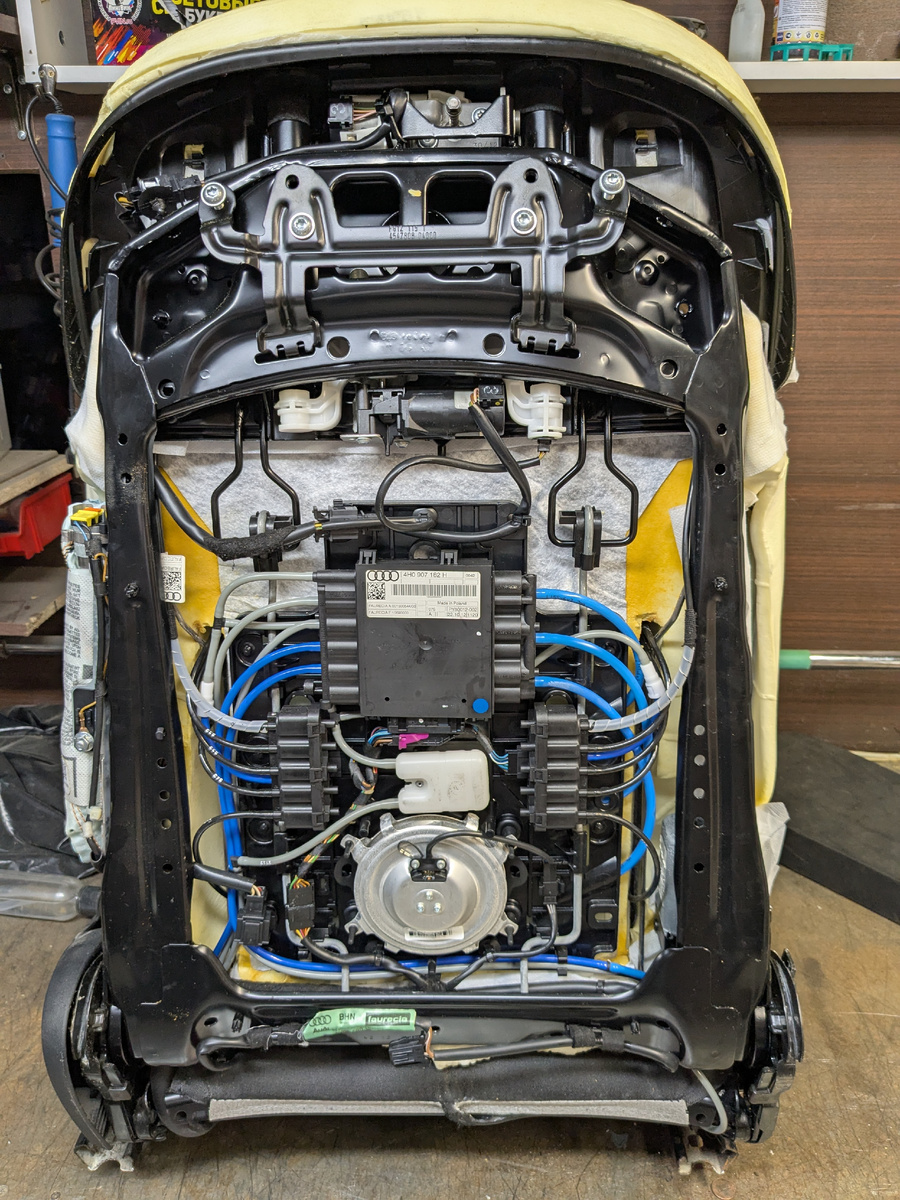 FAURECIA ul. Szczecińska , 66-400 Gorzów Wielkopolski (50 км от Варшавы,место производства) Этокресла SmartFit. Это такие поджопники, на которые можно сесть, взять айфон и запустить приложение SmartFit. В нём вводите свой вес, рост и пол, затем делаете фотографию себя в профиль на офисном стуле, отметив на фотке длину бедра, голени и другие параметры. Длину руки можно измерить, просто помахав айфоном. Затем приложение связывается с "Центром управления полётами", получает точные установки для вашего кресла, посылает их уже самому креслу, после чего, то уже само делает вжжжж… бжжжж… пщщщщ… ррррр. Прошу садиться! Сиденья выглядят обычными! :) Посмотрите: И это разработки пятнадцатилетней давности! В нижней части сидений "огород" не меньше. Не кажется чем-то инопланетным ?
