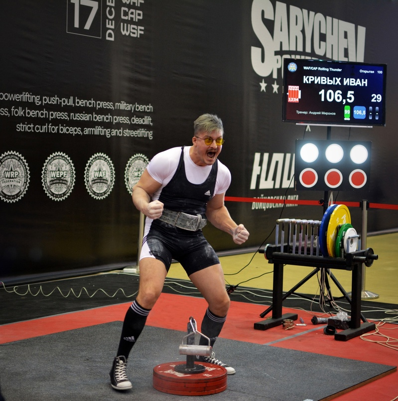 -Главный показатель - это результат на соревнованиях. Если есть возможность, в начале я делаю кардио на 30-40 минут, чтобы немного разогнать нервную систему и проснуться. Потом идёт работа с самомассажем, прокатка всего тела на валике. Далее лёгкий массаж перкуссионным массажером бицепса и предплечья. И только потом я начинаю работу со снарядом, обычно делаю до 6 подходов на разминке, повышая вес на 10-15% и дохожу до 90% от ПМ