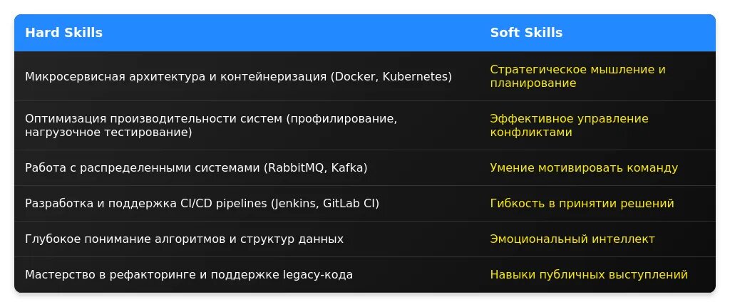 - Балансируйте между широтой и глубиной навыков, выделяя ключевые компетенции.