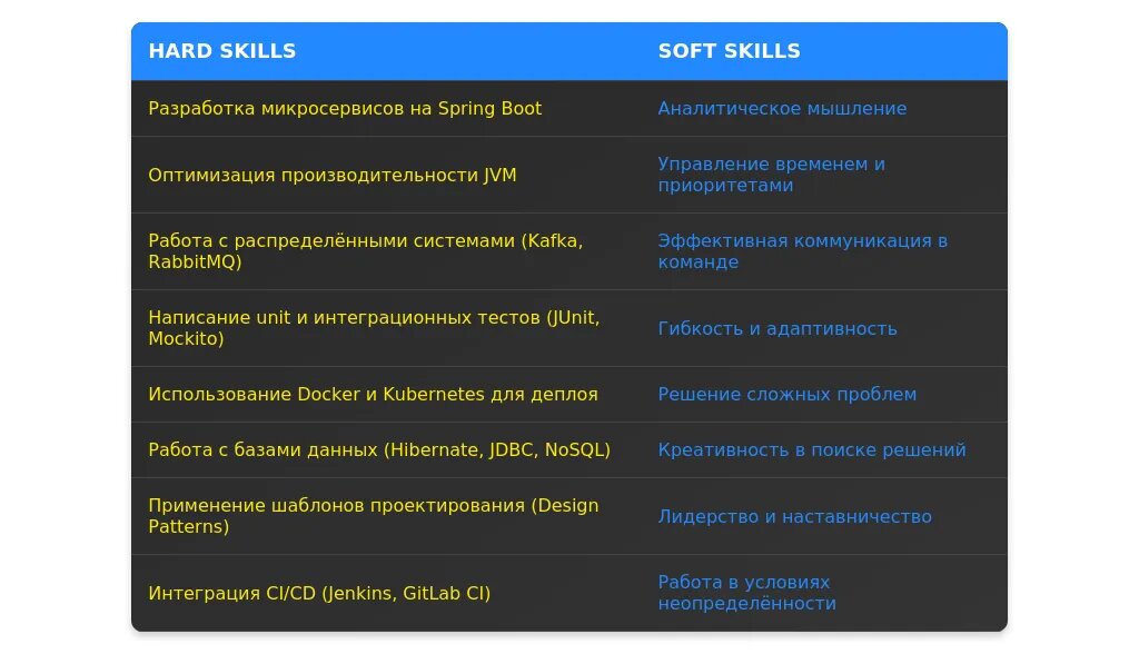 Как выделить уникальные компетенции: добавьте навыки, которые редко встречаются, например, опыт работы с Kubernetes или Kafka.