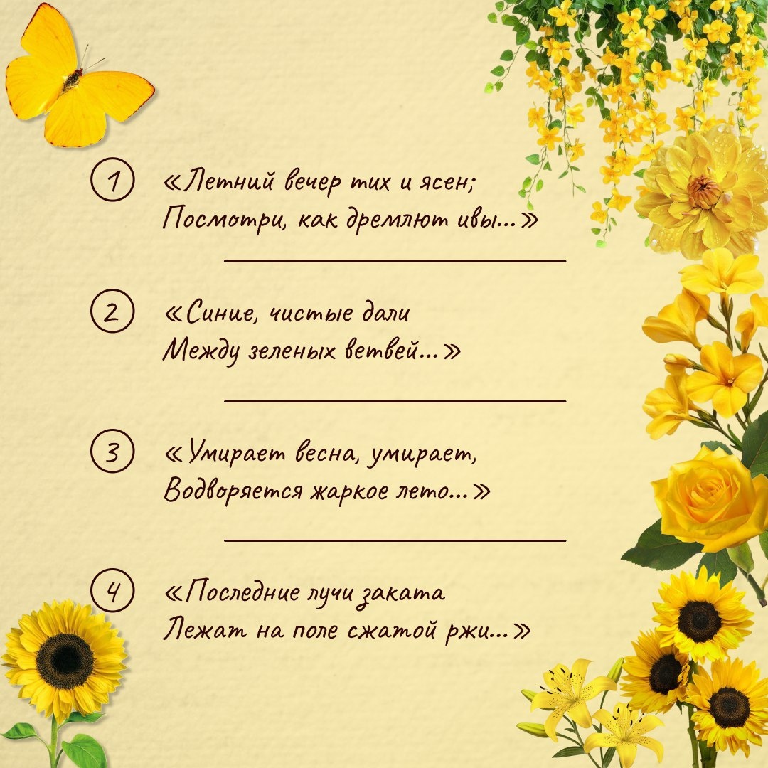 📜 В карточке собраны строки летних стихотворений. Сможете отгадать их авторов?