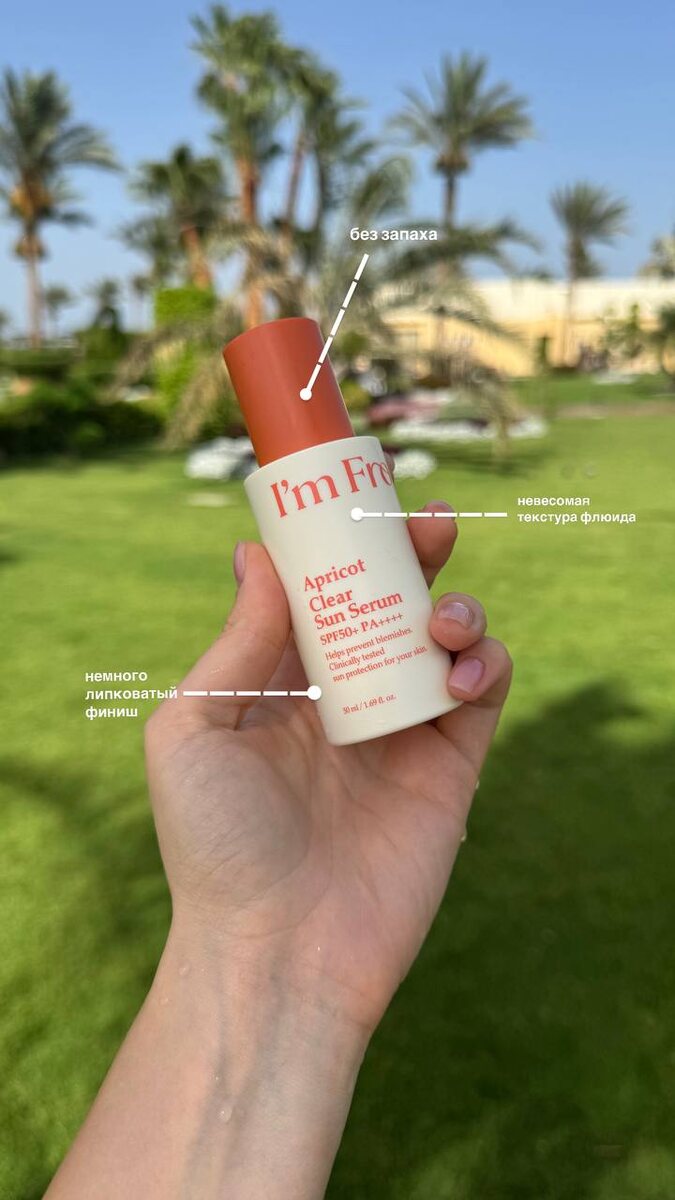 1 из фотозащитных средств , которое я взяла с собой в отпуск, - это сыворотка I’m from apricot clear sun serum