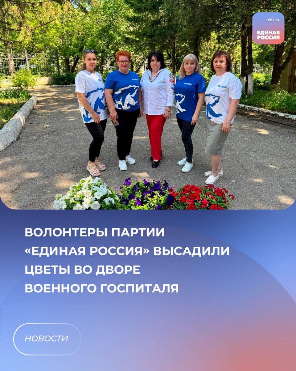 👍🏻Волонтеры партии «Единая Россия» высадили цветы во дворе военного госпиталя