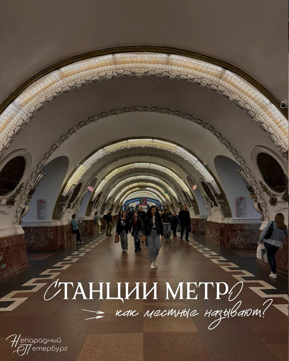 Петербургской подземки сленг🚇 Как думаете, сколько людей ежедневно использует метро? Примерно 4 миллиона. Это значительная цифра, учитывая, что метро в Петербурге не самое большое. Чтобы было удобнее и быстрее ориентироваться, местные жители упрощают и придумывают необычные, порой даже неожиданные прозвища для некоторых станций. В карточках - примеры - листайте! И делитесь в комментариях своими вариантами!) #непарадныйпетербург @vladislavkarpyuk