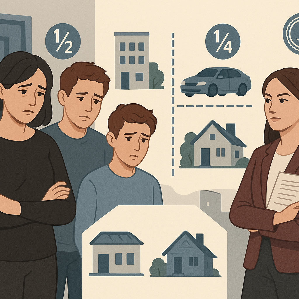 У Ирины умер муж, с которым они прожили в браке 20 лет. За это время они вместе нажили квартиру, автомобиль и дачу. У них двое общих сыновей. Но у мужа была еще дочь от первого брака, с которой он практически не общался — она никогда не приезжала к ним в гости, не участвовала в жизни семьи. После похорон Ирина стала переживать: появится ли эта дочь и будет ли она иметь право на часть их общего имущества? Может ли она претендовать на квартиру, машину, дачу, банковские счета? И можно ли как-то защитить интересы своей семьи? Ситуация Ирины — одна из самых частых в практике наследственных споров. Давайте разберёмся, как в подобных случаях делится наследство, и на что действительно может претендовать дочь от первого брака. В состав наследства включается всё имущество, которое принадлежало умершему на праве собственности на момент смерти (ст. 1112 ГК РФ). Это может быть квартира, автомобиль, дача, банковские счета, ценные бумаги и другое имущество. Важно! Если квартира, автомобиль или иное