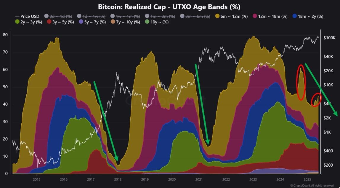Как сообщает CryptoQuant: «По мере приближения цикла к финальной стадии доминирование биткоина, вероятно, снизится, а альткоины могут увидеть более резкий рост, чем в предыдущих моделях».
