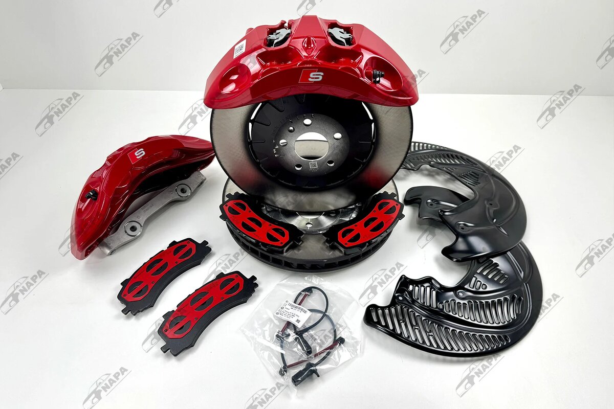 Для сохранения вылета Allroad можно установить проставку 5мм между колесным диском если это необходимо. Ну и сам комплект: Суппорт Akebono 6 поршневой красный c шильдиком S (левый) — арт. 4M0615107AG — 1шт.