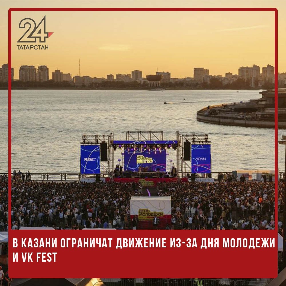 ⛔️📱В Казани ограничат движение из-за Дня молодежи и VK Fest В Казани в конце июня планируют временно ограничить движение и стоянку транспорта на ряде улиц. Это связано с проведением Дня молодежи и фестиваля VK Fest. Постановление вступит в силу после завершения антикоррупционной экспертизы. 28 июня с 5:00 до 23:00, при необходимости, движение будет ограничено на улице Подлужной — от улицы Толстого до моста «Миллениум» в обоих направлениях. Также закроют проезд с улицы Вишневского и самого моста на Подлужную. С 20:00 28 июня до 23:00 29 июня ограничения введут на период подготовки и проведения VK Fest. Они коснутся следующих участков: 🔹улица Сибгата Хакима — от Декабристов до Абсалямова в обоих направлениях; 🔹улица Бондаренко — от Солдатской до Сибгата Хакима в обоих направлениях. Подписаться на Татарстан-24 Отправить новость