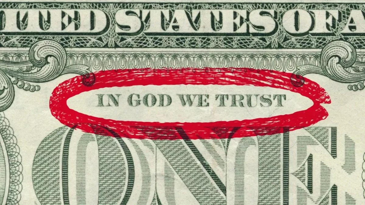 IN GOD WE TRAST - надпись на зелёной бумажке, так почитаемой всеми паразитами и их слугами.
