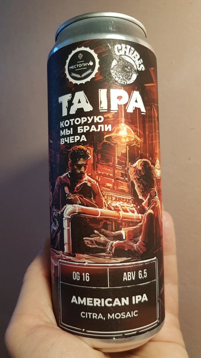 American IPA Объём - 0,45 литра. Алкоголь - 6,5 %. Плотность - 16. Горечь - неизвестно. Хмели: Citra, Mosaic. Ничего такая ИПА. Чесно, ожидал худшего или так сказать не ожилал ничего выдающегося взяв на пробу. Средняя.
