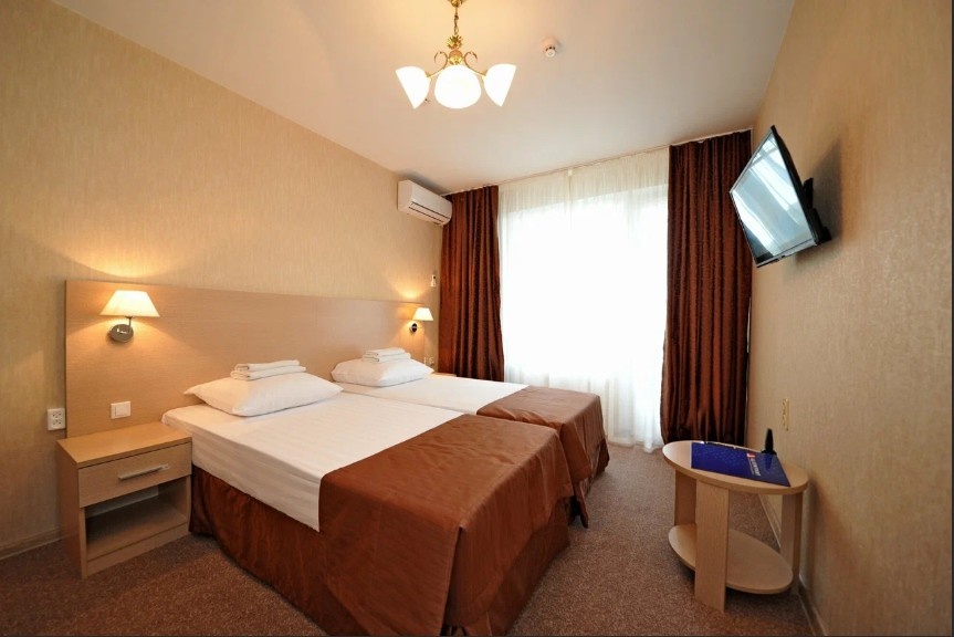 Чистые и уютные номера с белоснежным постельным бельем. У каждой кровати — тумбочка и дополнительное освещение. В номере есть шкаф для одежды, холодильник, стол, телевизор, кондиционер и Wi-Fi. Всё необходимое для комфортного проживания. В душевой всегда есть гель для душа, шампунь, мыло и фен для укладки. Для удобства гостей предусмотрены полотенца для ног, тела и бассейна. Всё чисто и аккуратно. Небольшой балкон с видом на море. Санаторий удачно расположен: первая береговая линия, рядом магазины «Перекрёсток», «Фикс-прайс» и другие. Здесь можно купить одежду, обувь и сувениры. Также рядом множество кафе. Дружелюбный и внимательный персонал, готовый помочь в любой ситуации, и вкусная, разнообразная еда — вот что делает это место особенным. Всё свежее и вкусное. Это здоровая еда. К чаю всегда свежая и аппетитная выпечка. С балкона открывается потрясающий вид на дельфинарий. Рядом, в нескольких минутах ходьбы, расположены музей животных и океанариум. Каждый вечер после ужина для детей п