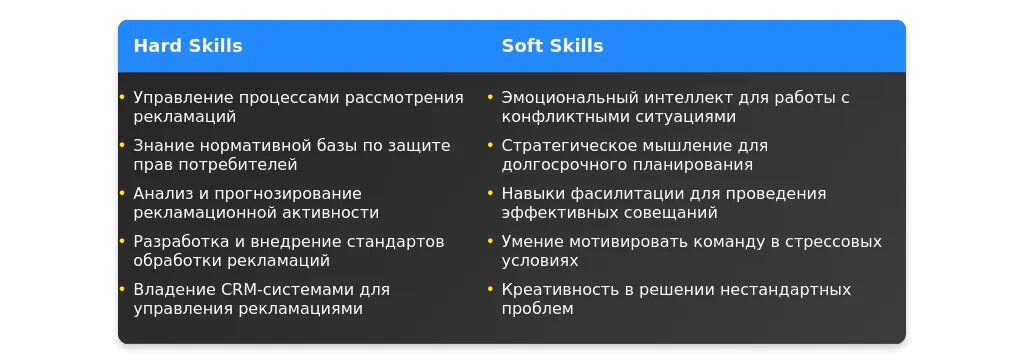 Пример 5: "Навыки ведения переговоров с клиентами". Это ключевое требование для руководителя отдела рекламаций, которое важно подчеркнуть.