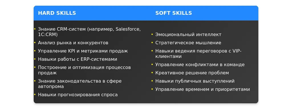 При анализе вакансии важно выделить ключевые требования, которые работодатель считает обязательными. В первую очередь обращайте внимание на такие аспекты, как опыт управления отделом продаж, знание рынка автомобилей, навыки ведения переговоров и достижения плановых показателей. Желательные требования могут включать знание CRM-систем, опыт работы с дилерами или наличие сертификатов в области продаж.